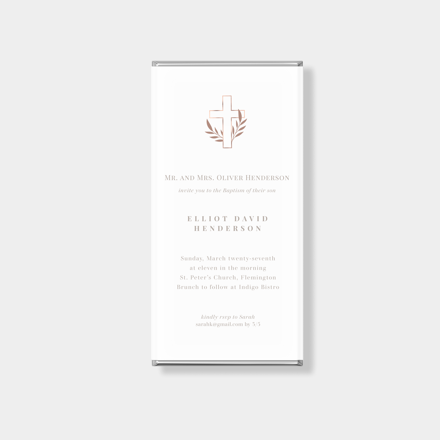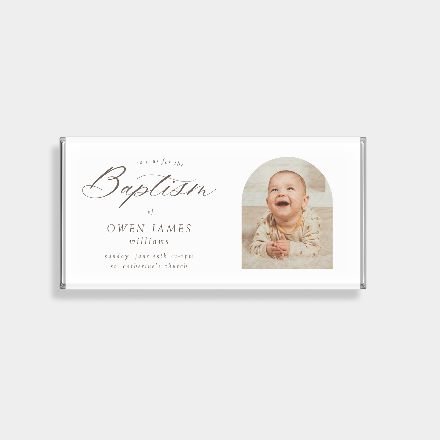 Celebrate this meaningful occasion with elegant baptism favours crafted from luxury personalised chocolate bars. Custom designed to complement your theme and colour palette, our chocolate gifting adds a refined finishing touch to every table setting.
