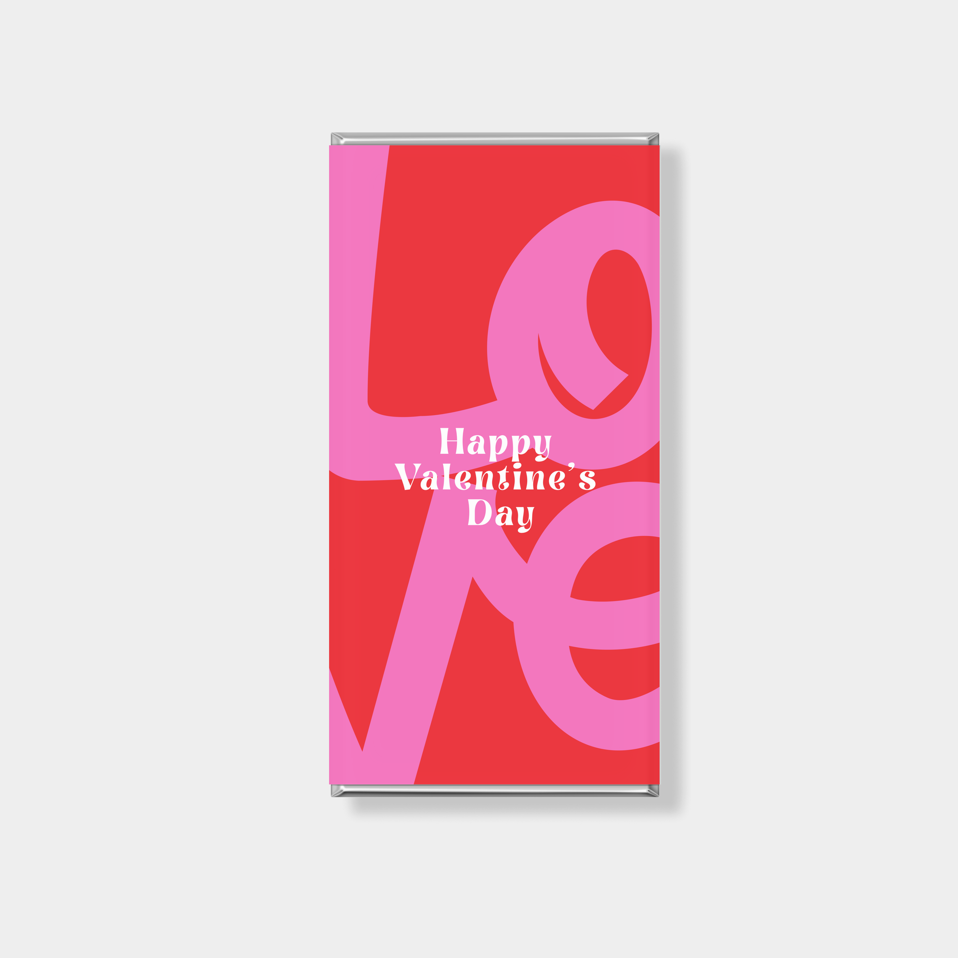 Refined and confident, the Lovely personalised chocolate bar features bold curves and saturated pink tones. Graphic and contemporary, this design delivers a personalised chocolate bar created for modern Valentine gifting.