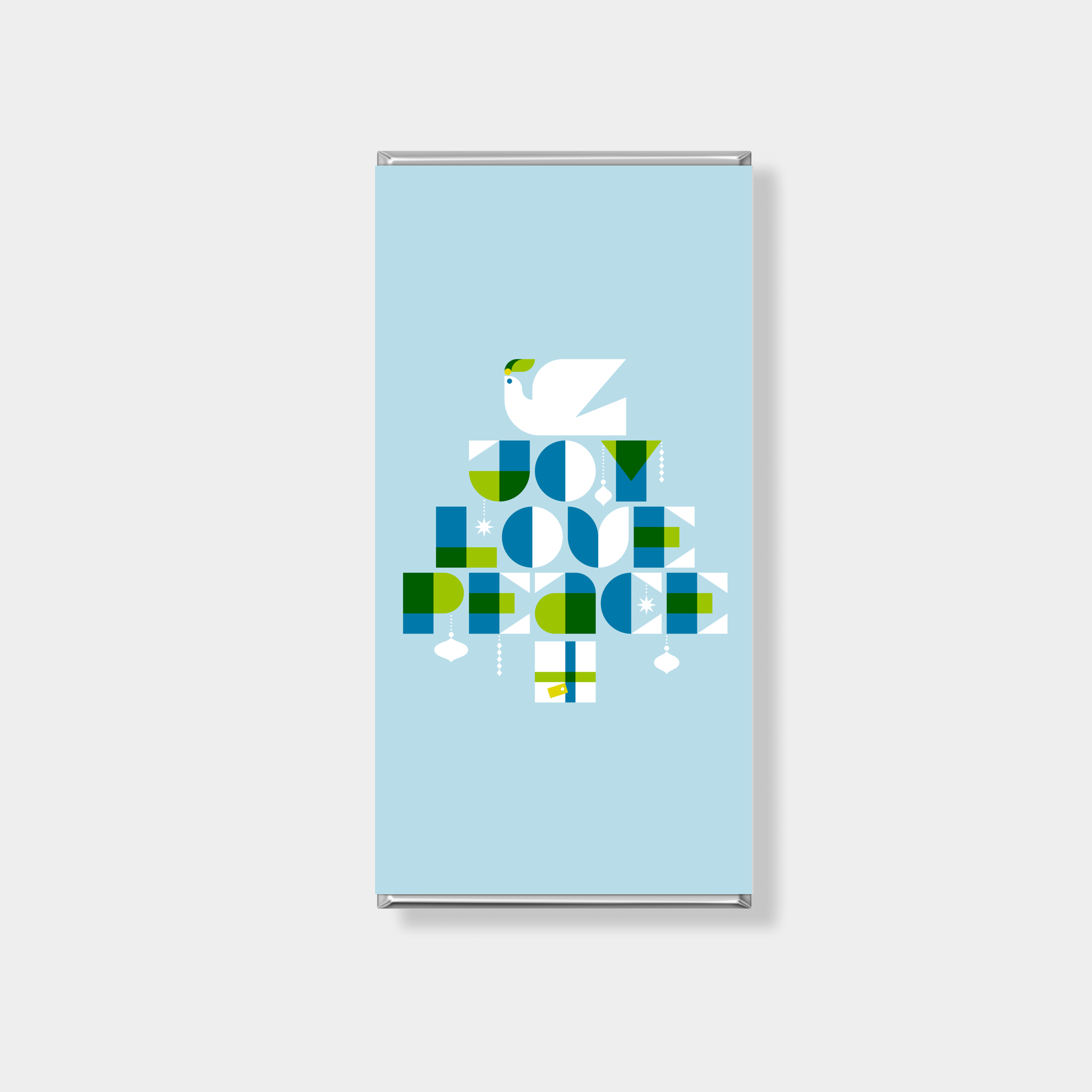 Featuring a light blue base with geometric tree detailing, this design is suited to modern Christmas celebrations and gifting. Crafted to feel fresh and fun, it delivers a personalised chocolate bar with contemporary appeal.