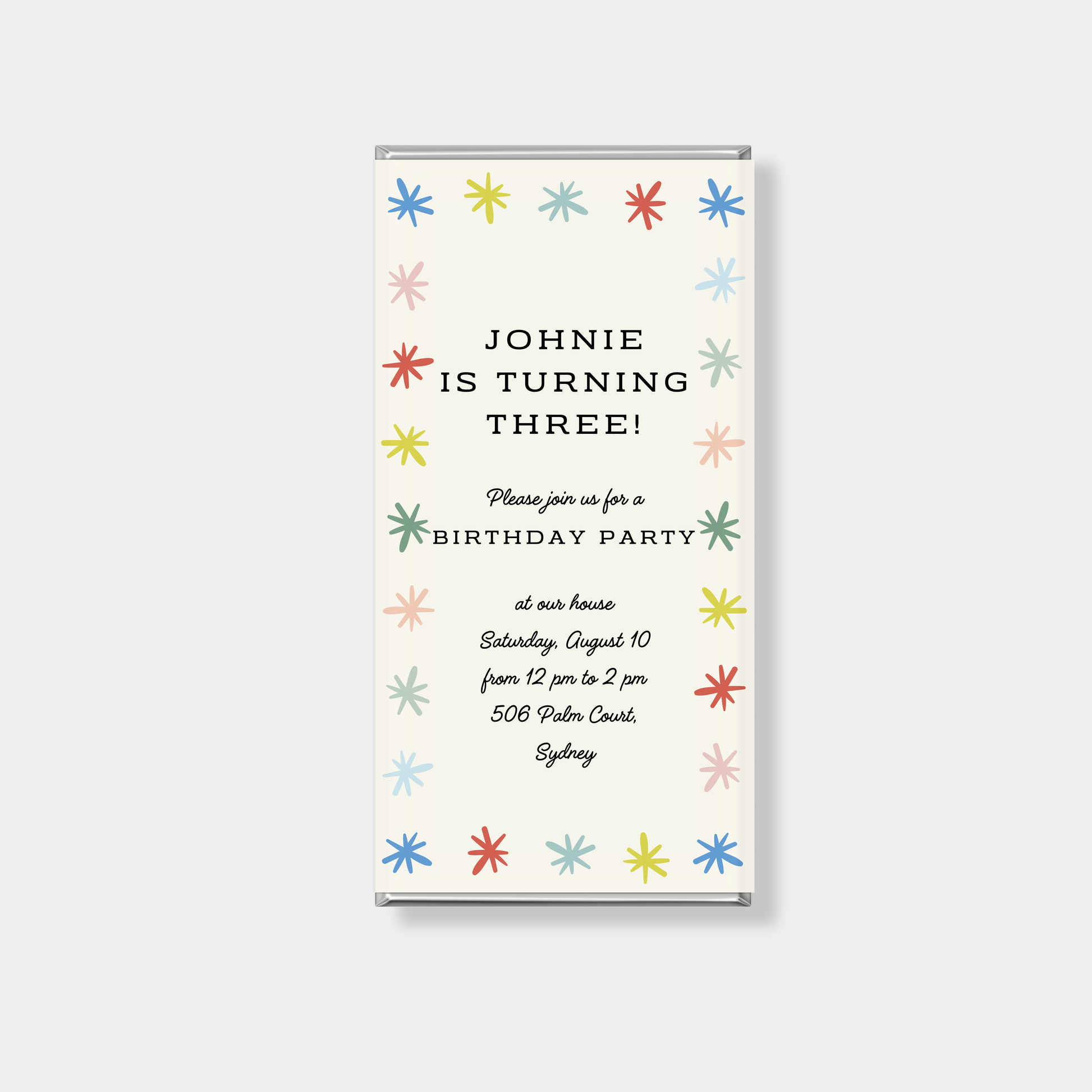 Joyful and light, the Sprinkle birthday personalised chocolate bar captures the fun of celebration.