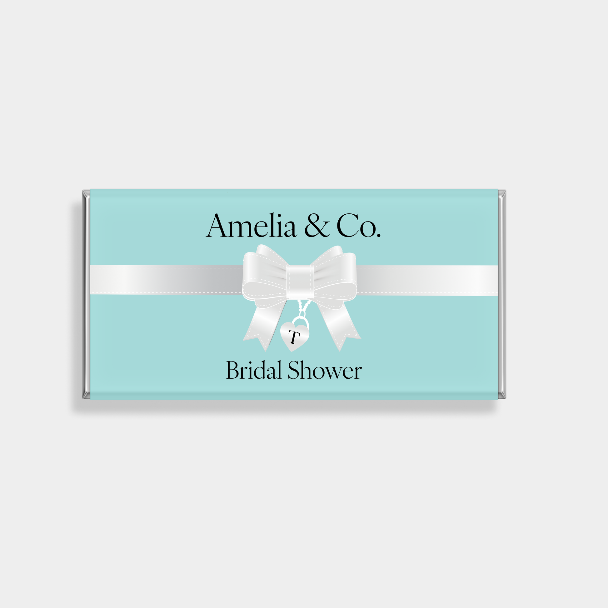 Iconic and refined, the Teal bridal shower personalised chocolate bar is inspired by timeless sophistication.